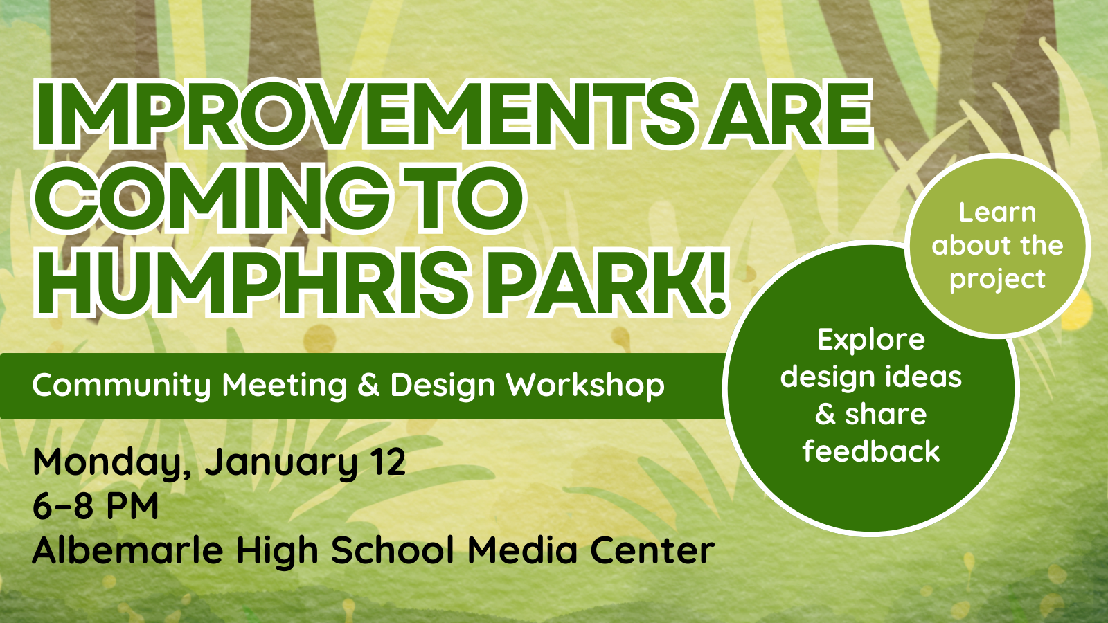 Albemarle County is planning major improvements at Charlotte Yancey Humphris Park on Whitewood Road, and your input will help shape the park’s future!